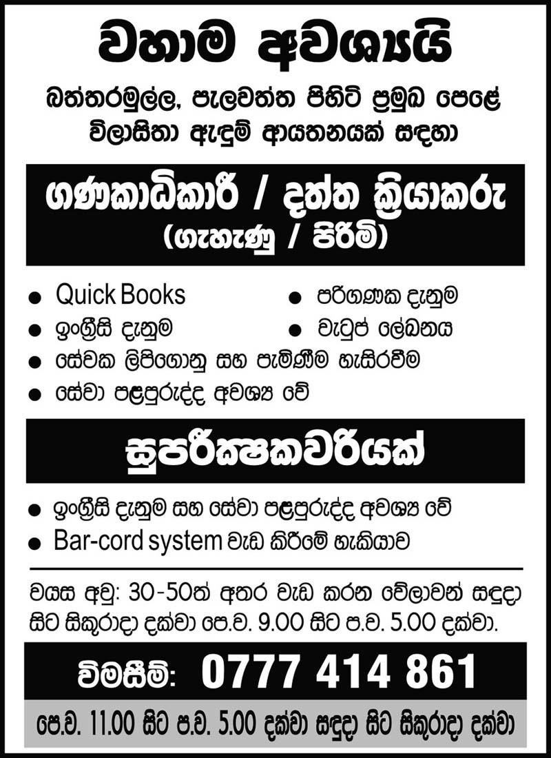 Accountant, Data Operater, Supervisor