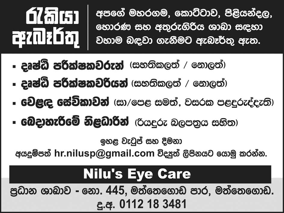 Eye Specialists, Sales Officers, Distributors Vacancies