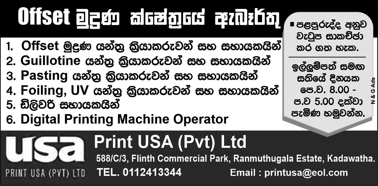 Graphic Designers, Telephone Operator, Office Assistant, Vedeo Editors
