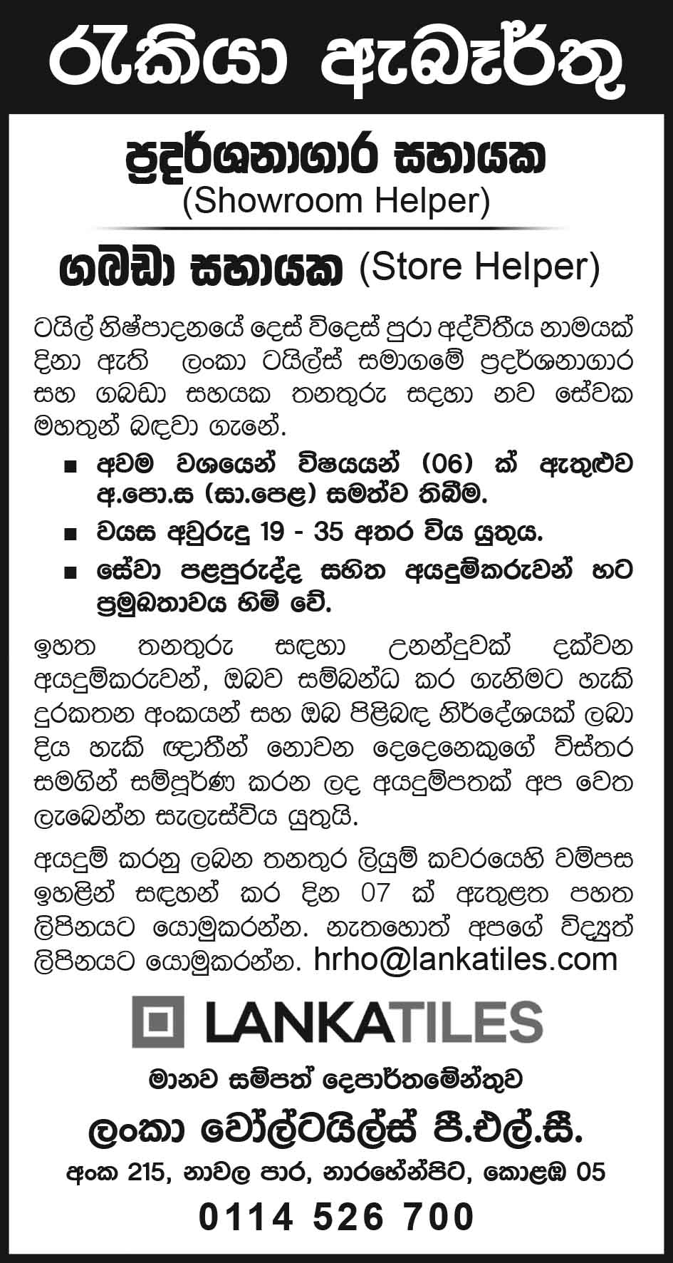 Cashier Male, Cleaner, Delivery Boy, Supervisor food, Sales Household, Team Leader, waiter, cook, Pa
