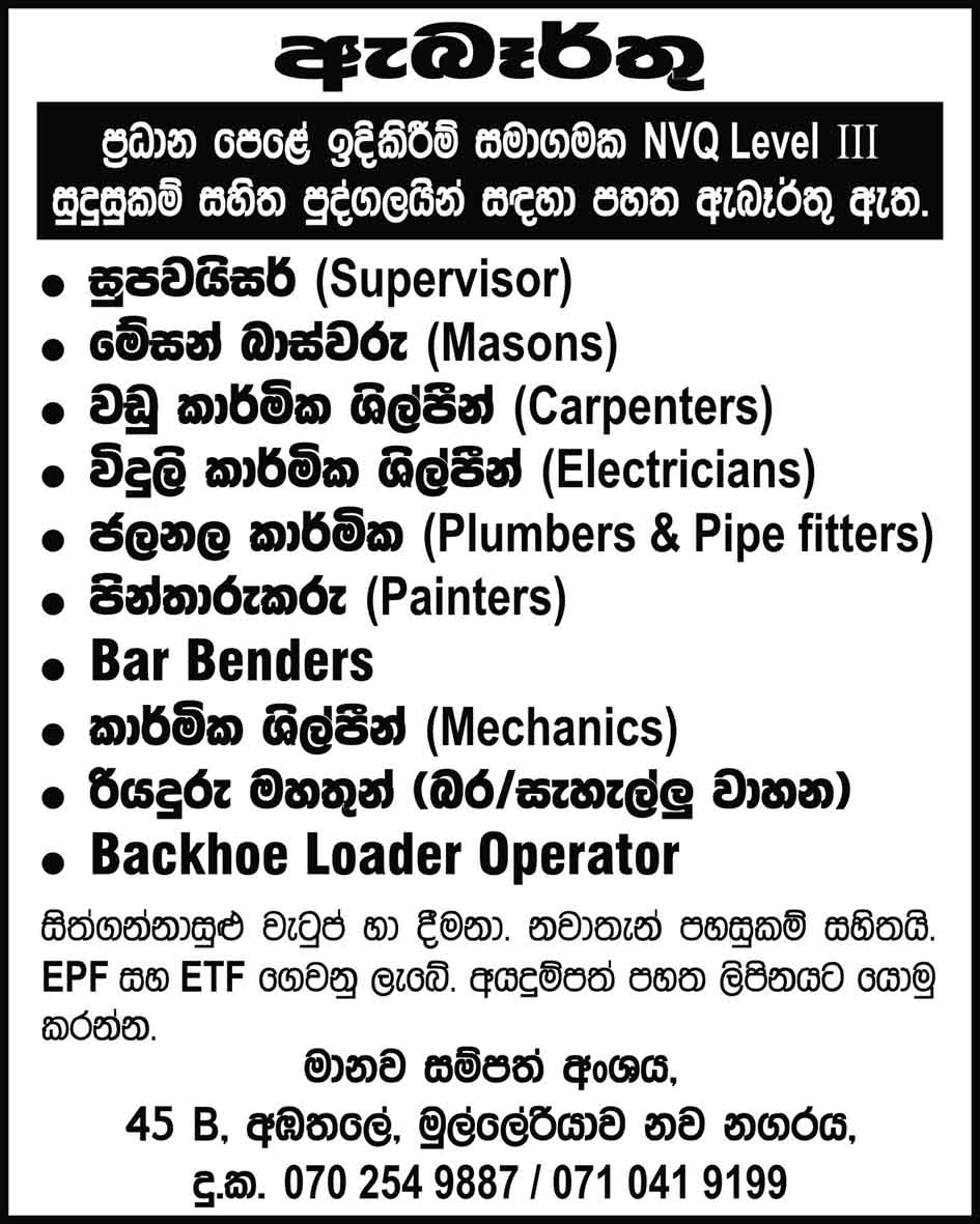 Supervisor, Masons, Carpenters, Electricians, Plumbers, Painters