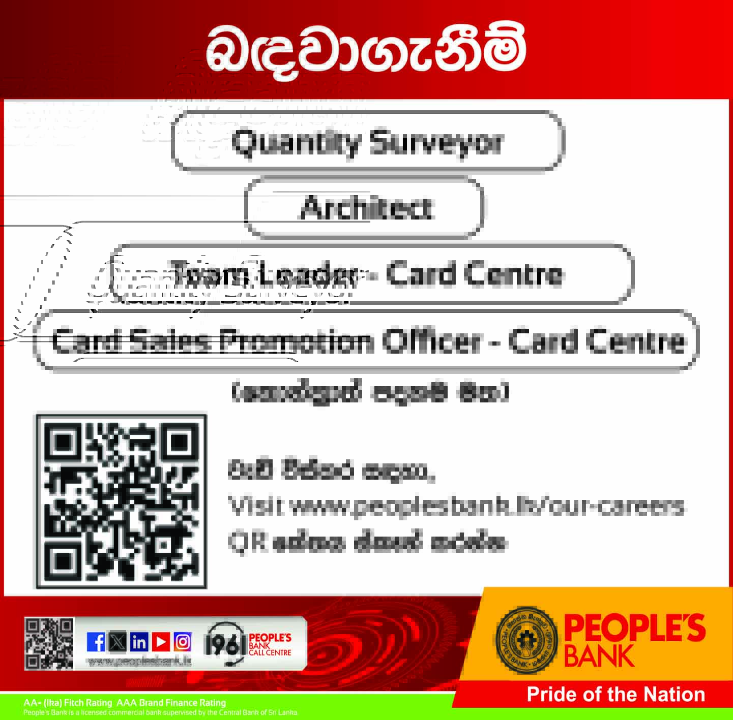 Quantity Surveyor, Architect, Team Leader Card Centre, Card Sales Promotion Officer