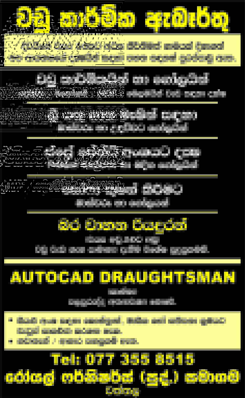 Carpenter, Heavy Vehicle Drivers, Spray Painter, Auto cad Draughtsman