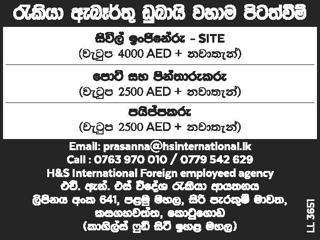 Sales Assistant Male & Female, Securiy Officer, Cashier Male & Female