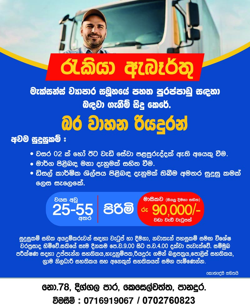 Cashier, Steward, Bakers, Drivers, Cook Vacancies