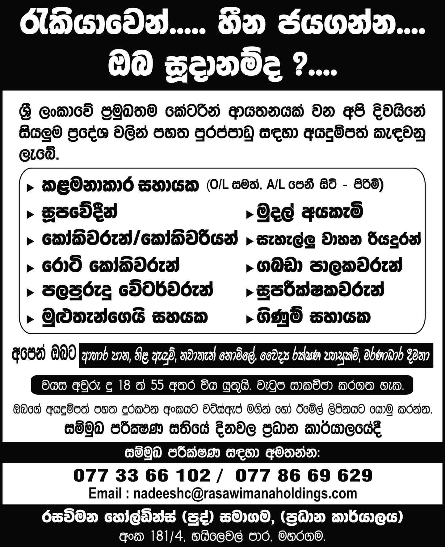 Assistant Manager, Cashier, Waiter, Kitchen Helper, Account Assistant