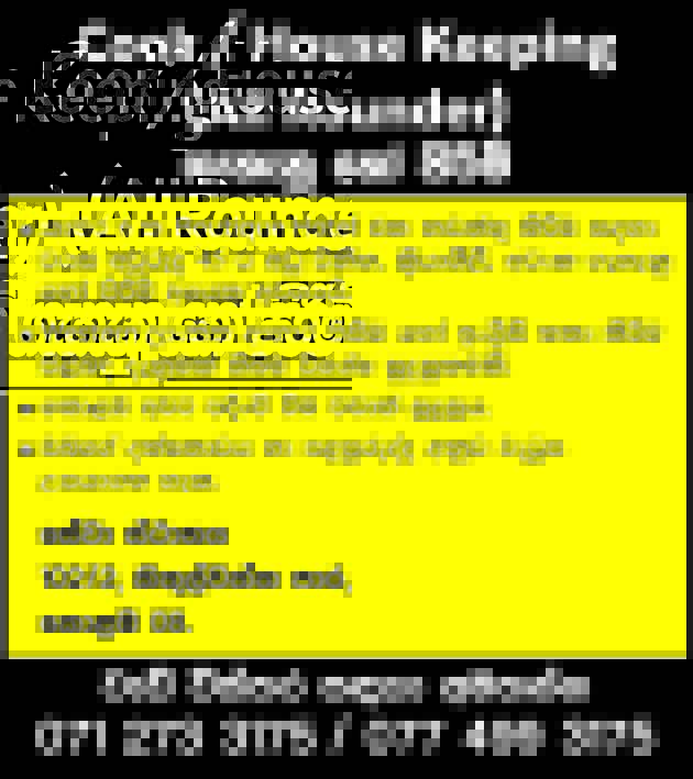 Cook, House Keeping