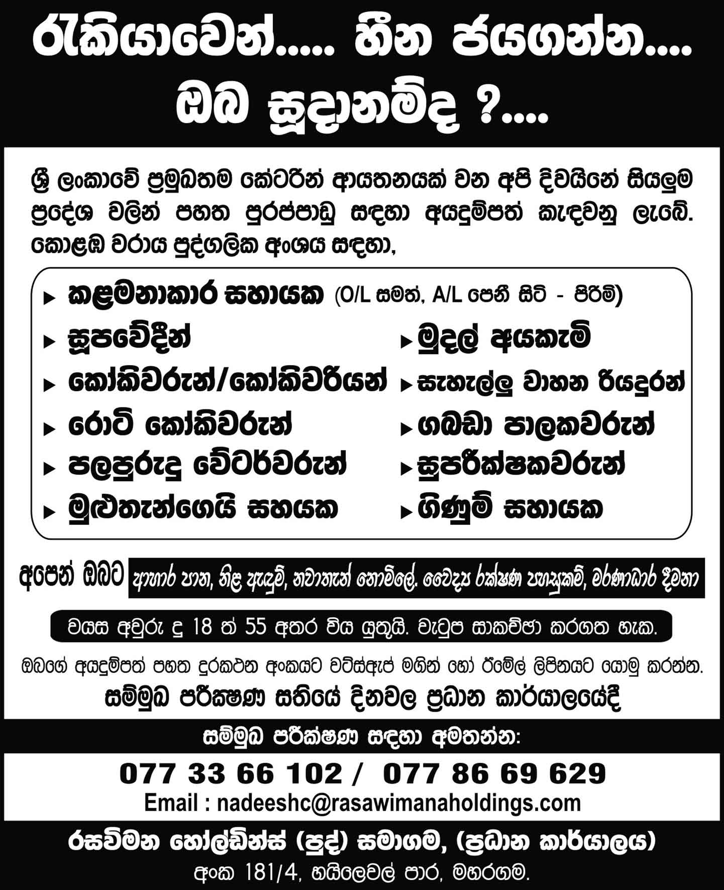 Assistant Manager, Chef, Supervisor, Assistant Accountant, Kitchen Helper