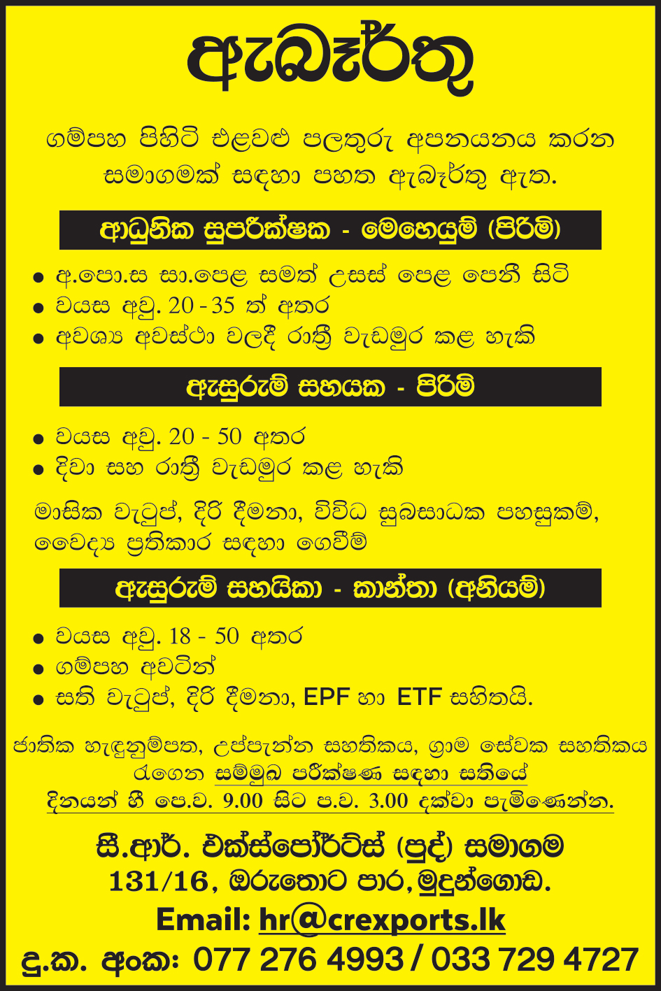 Welder, Fitter Foreman, Motor Mechanics, Helpers, Servicemans, Electricians, Fitters