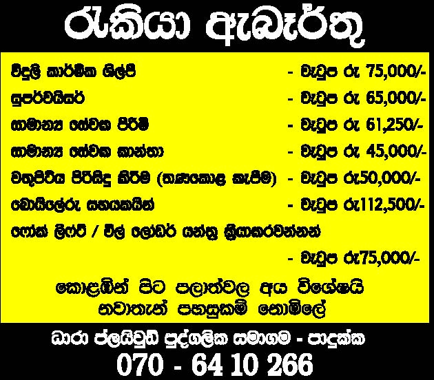 Electrician, Supervisor, Boiler Operator, Forlk Lift Operator
