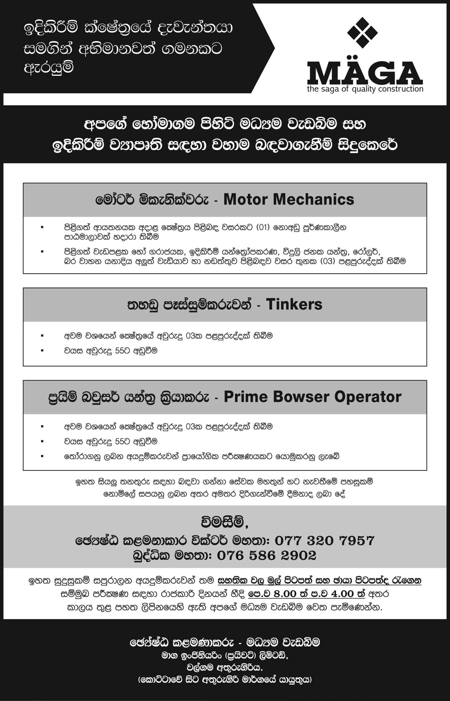 Multi Technician, Carpenter, Helpers, Office Peons, Labours