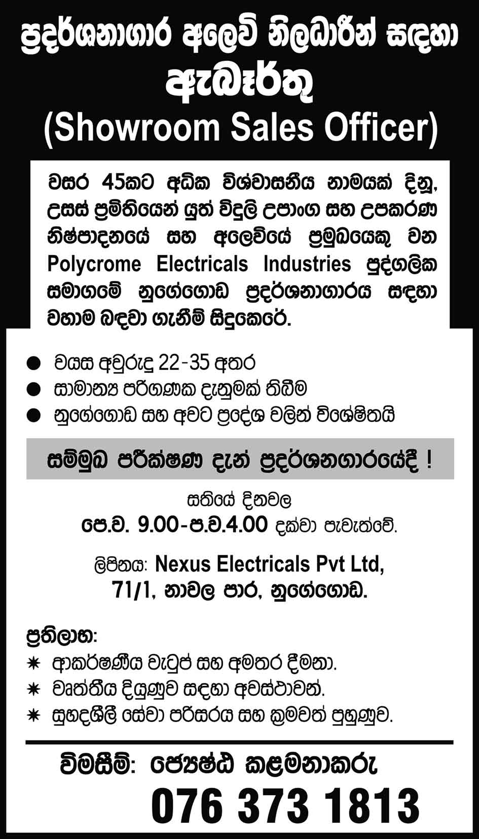 Showroom sales Officer