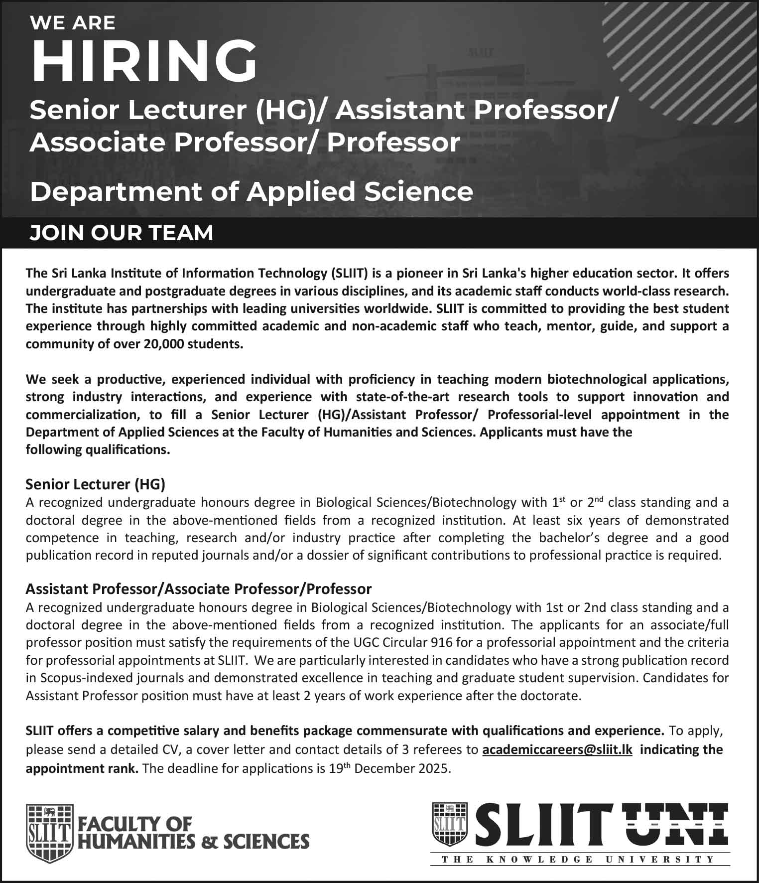 Senior Lecturer, Assistant Professor, Associate Professor,Professor